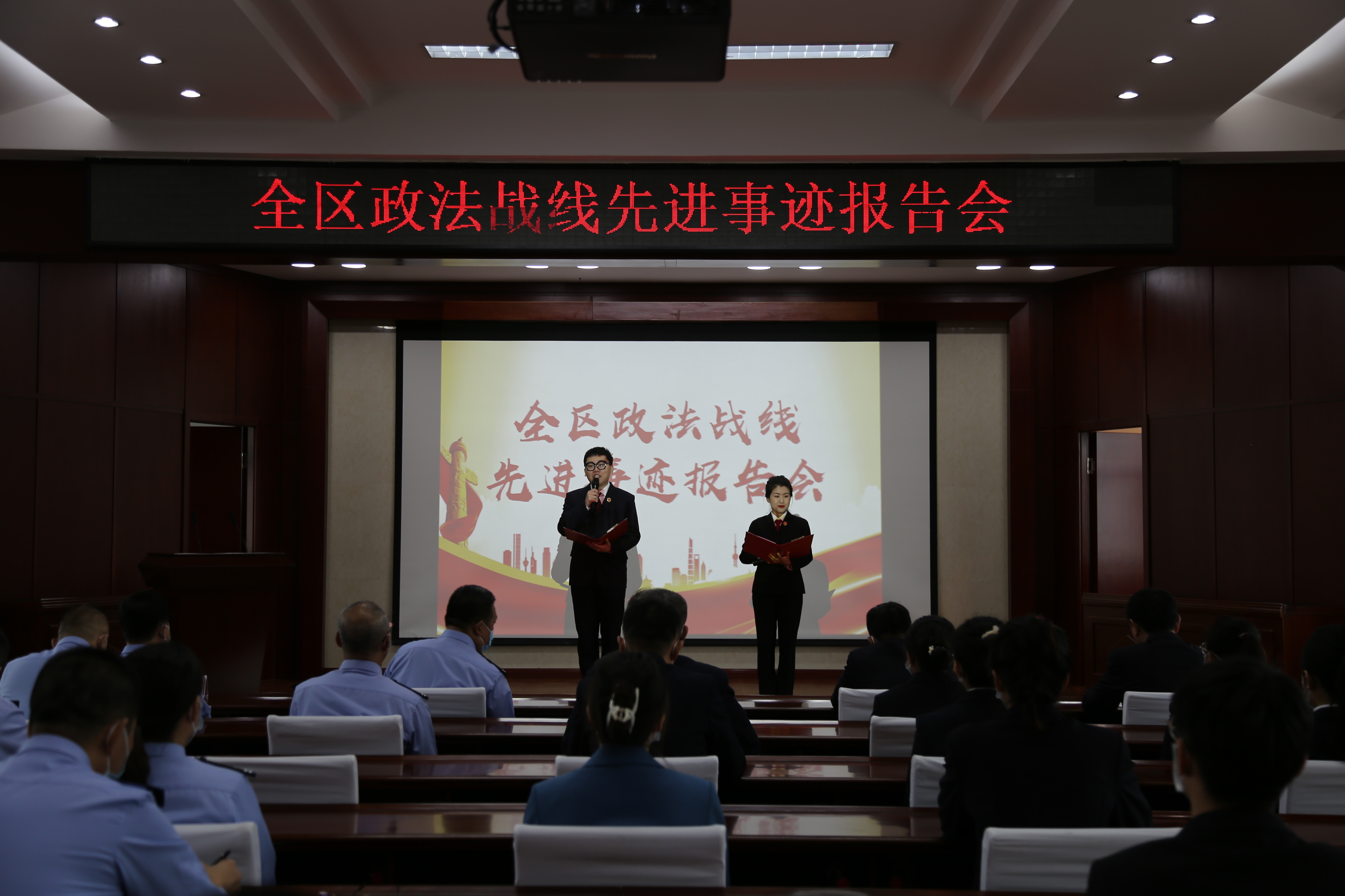 9月29日上午,滴道区召开政法战线先进事迹报告会,政法委副书记刘相生,公安局局长朱振龙,检察院检察长刘少成,司法局局长刘霞,法院院长苑司新等40余人参会。