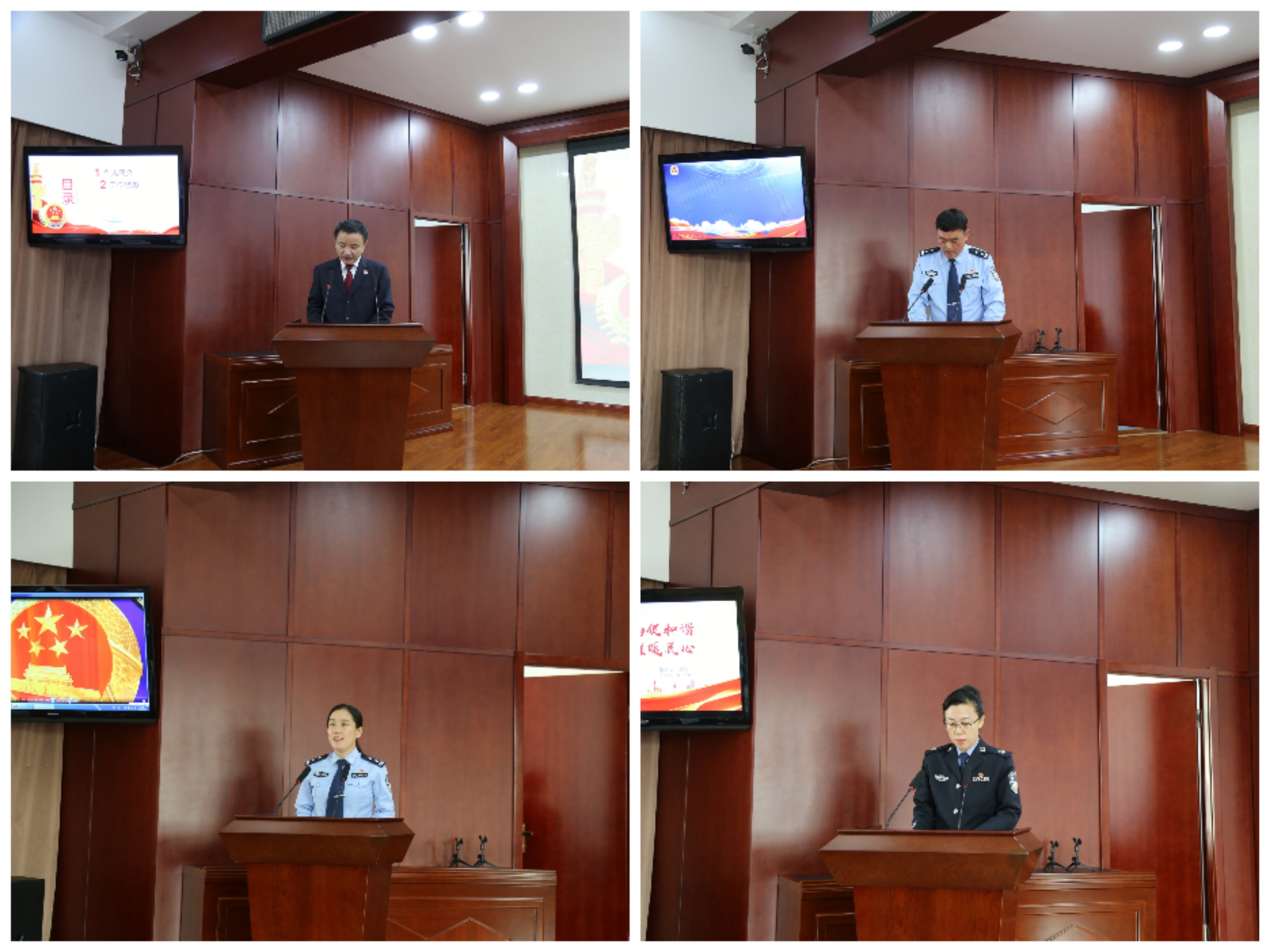 检察院副检察长秦建辉、公安分局刑警大队大队长薄祥飞、滴道分局河北派出所副所长单洪梅、司法局局长刘霞做先进事迹报告