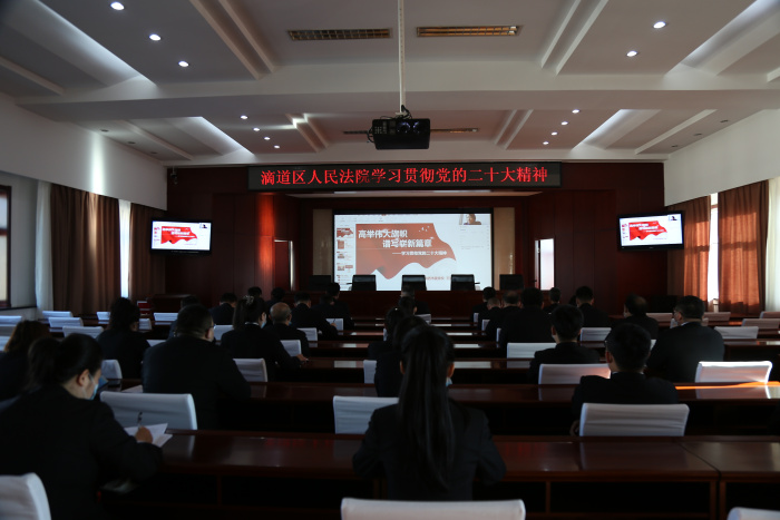 接下来,滴道法院将学习好、宣传好、贯彻好党的二十大精神作为当前和今后一个时期首要的政治任务,把二十大精神贯穿到法院工作的方方面面,真正将学习的热潮转化为推动工作的强大动力,不断满足人民群众对司法服务的新需求。
