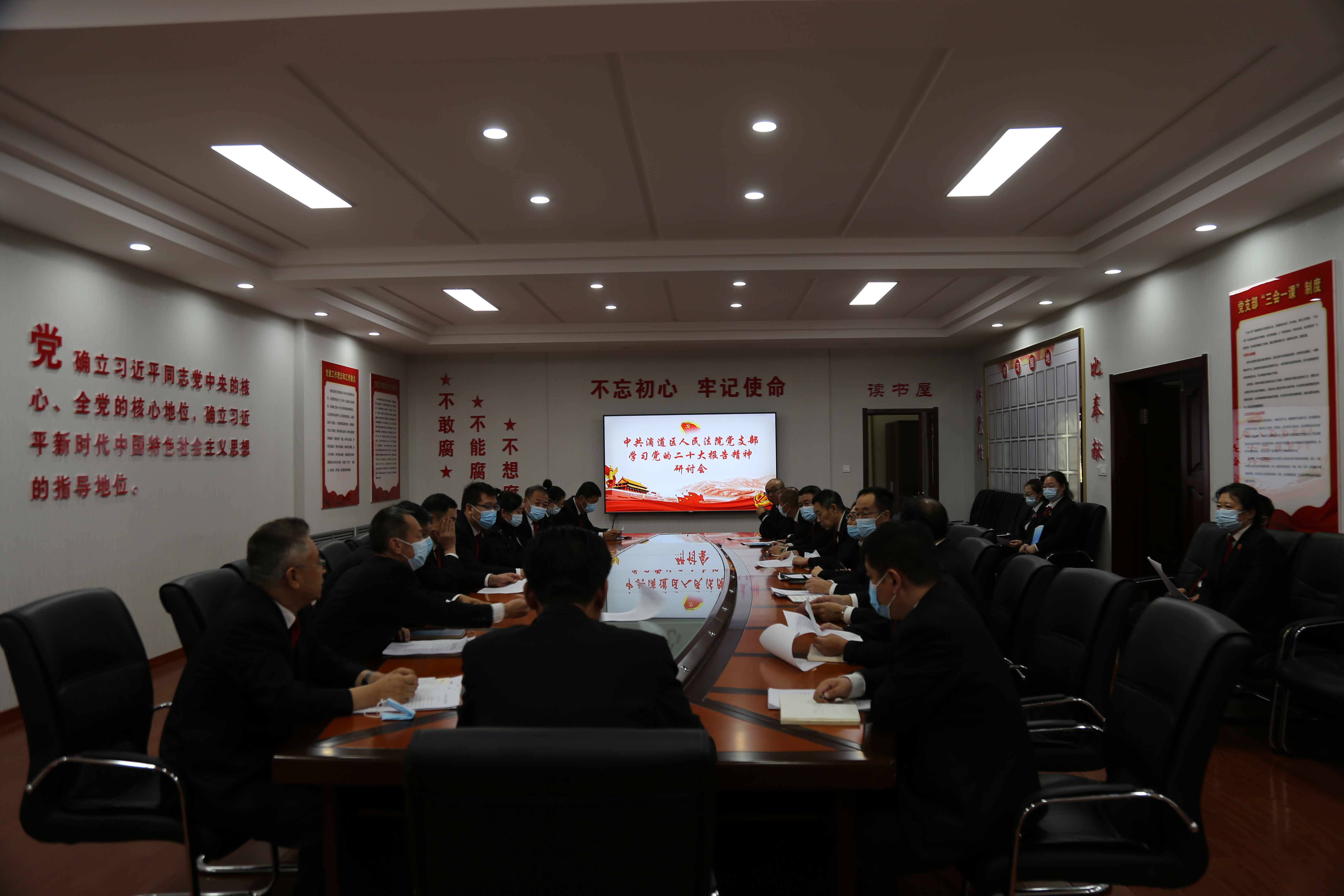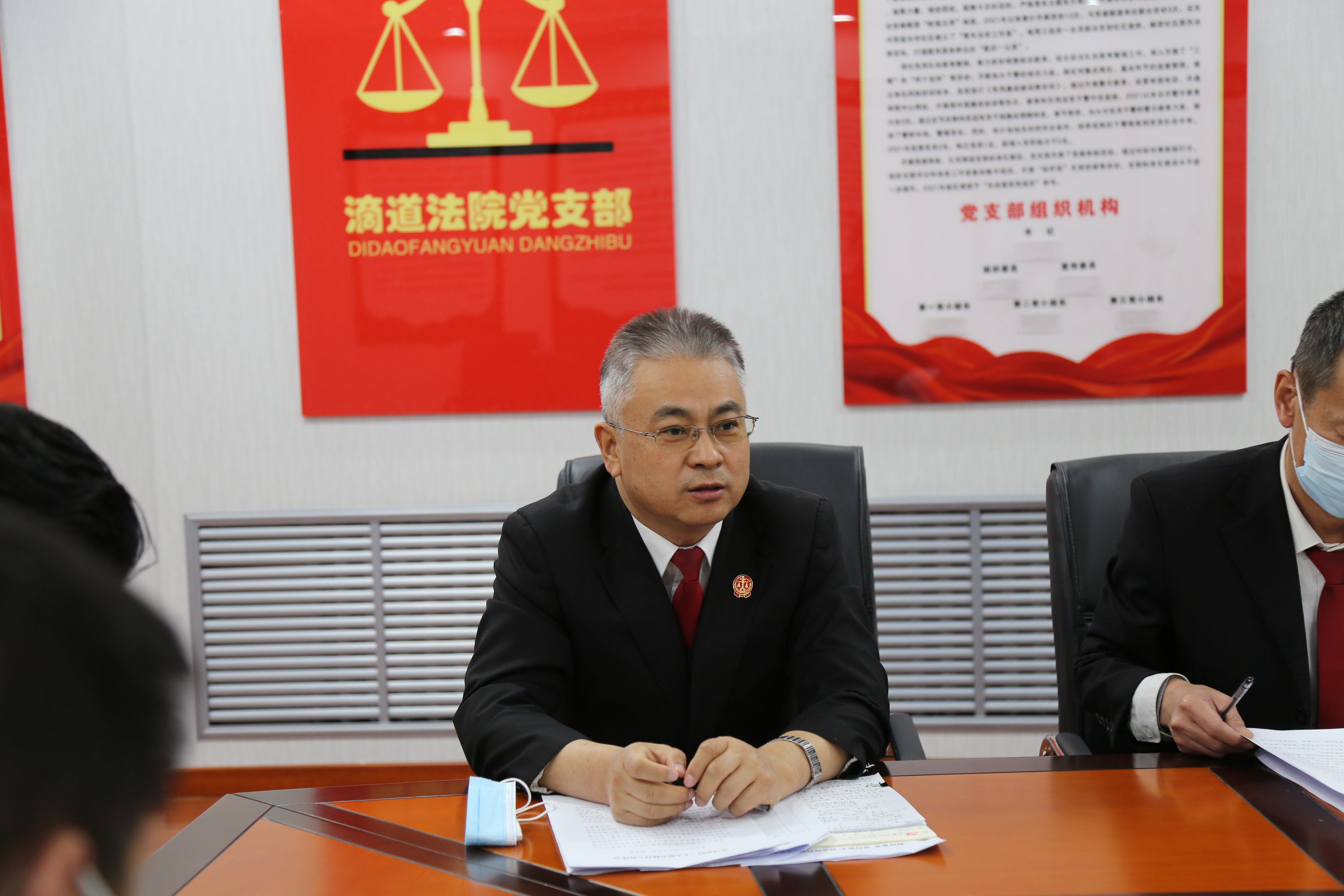 为带动广大干警掀起学习党的二十大精神的热潮,近日,滴道法院党支部举行“学习贯彻党的二十大精神•奋进新征程”主题讨论活动。会前,党支部书记张君起领学了习近平总书记在中国共产党第二十次全国代表大会上的报告精神。党组书记苑司新及其他党组成员以普通党员身份参加了研讨活动。