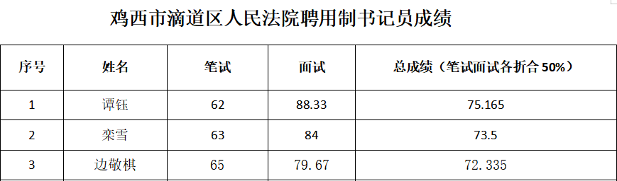 依据《滴道区人民法院聘用制书记员、文员招聘录用考试实施方案》规定,为加强聘用制书记员、文员选拔任用工作的民主监督,现将拟聘用人员名单进行任前公示,公示期限为2022年11月25日至2022年12月01日(5个工作日)。本次考试拟聘用谭钰、栾雪、边敬棋3名同志为聘用制书记员。现予以公示。