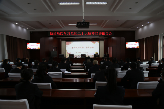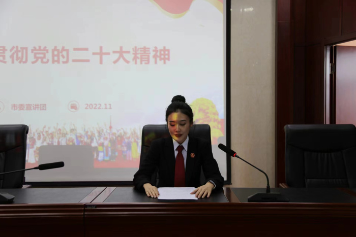 为深入学习贯彻党的二十大精神,切实用党的二十大精神武装头脑、指导实践、推动工作。11月30日,滴道区人民法院举行学习党的二十大精神宣讲报告会,政治部科员朱赛君做为团市委青年讲师团成员作党的二十大精神宣讲,全体干警参加会议。