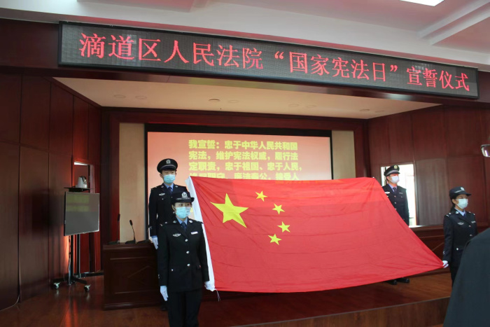为迎接第九个“国家宪法日”,弘扬宪法精神,12月2日,滴道法院举行全体干警集体宣誓仪式。