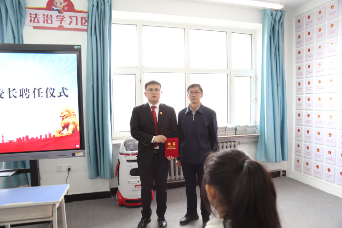 聘任仪式上,滴道学校副校长刁望青向法官助理王泽龙颁发法治副校长聘书,并对学校的法治教育提出了希望和要求。