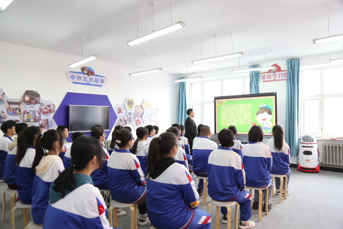 随后王泽龙为该校学生讲授两堂法治知识课,第一堂课是围绕当前影响未成年人健康成长的网络安全问题,结合典型案例与生活实际,用通俗易懂的语言向学生们讲解了网络安全的重要性、未成年人使用网络的相关规定、如何安全上网等方面知识,告诫学生们要自觉远离不良网络信息,筑牢网络安全防火墙。第二堂课围绕如何防范毒品,通过播放禁毒宣传短视频向学生们展示了冰毒、海洛因、麻果、罂粟花等常见毒品的照片,引导学生进一步认清毒品的危害,教育学生要远离毒品,珍爱生命。
