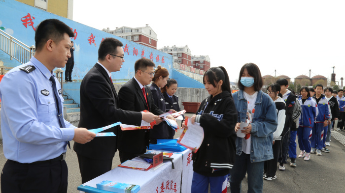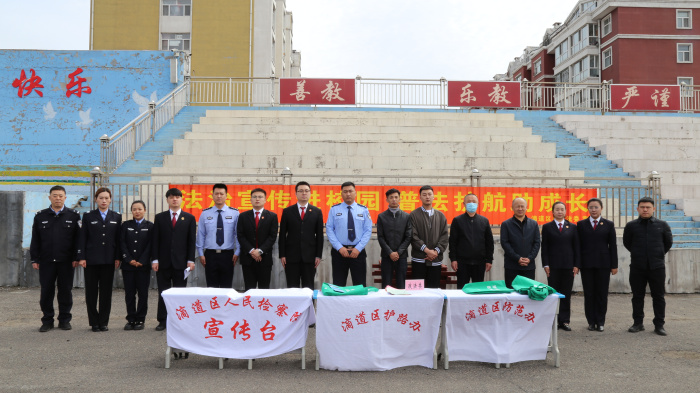 政法委、公安局、检察院、法院、司法局等政法战线单位联合开展法治宣传进校园活动。活动现场设置了咨询台并悬挂宣传横幅,工作人员一边派发宣传资料,一边向学生介绍着宪法、民法典、反电信网络诈骗法、反有组织犯罪法、未成年人保护法、预防未成年人犯罪法、家庭教育促进法等法律法规知识,发放法治宣传单,让学生学会用法律保护自己的合法权益,增强自我安全防范能力。号召学生树立法治信仰,倡导“法治校园”意识,鼓励学生向家人、同学等宣传法律知识。本次活动共发放法律宣传资料1000余份,出动宣传人员15人。滴道学校学生对此次普法宣传活动非常认可,纷纷表示今后将自觉做到学习法律、遵守法律、维护法律。
