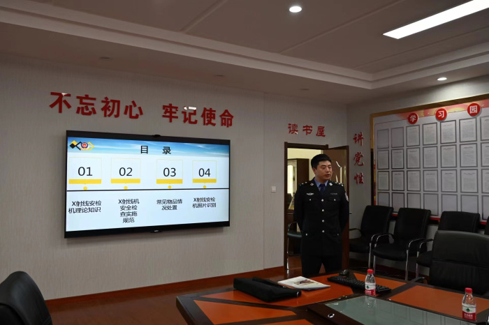 中院法警张雷为滴道法院法警讲授X射线安检机理论知识,包括X光机的使用和注意事项、安检规范化、专业化的内容进行指导。重点对人身检查流程、重点部位检查的动作要领,限制物品存放以及管制物品、易燃易爆物品、强腐蚀性危险品等违禁物品在X光机检测下的成像特点等内容进行授课,并且列举出部分违禁物品成像图片,使大家熟知并掌握,并就如何依法防止违禁物品进入审判区域的安检流程和注意事项进行现场指导和演练。