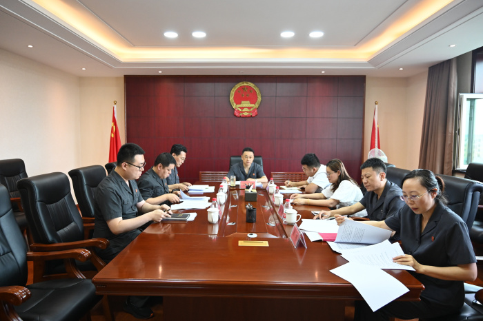 7月5日,滴道区人民法院召开党组会议,会议上学习《习近平著作选读》——《改革开放永无止境》,党组书记、院长苑司新领学,市委第三巡察组郭兴邦、关悦列席会议。