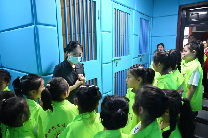 在讲解员的带领下,参观者们先后来到了诉讼服务中心、安检区、科技法庭、家事法庭、羁押室、党建活动室等场所,感受到了法院安检的流程、安检工具的使用,明白了哪些是不能带入法院的物品,也了解了民事法庭和家事法庭的区别。
