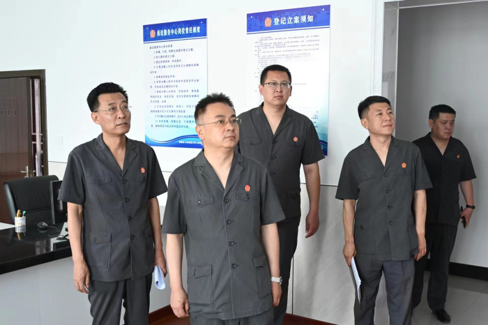 7月26日上午,滴道法院党组书记、院长苑司新与院班子成员来到兰岭法庭,调研法庭诉源治理和“六无”乡村建设情况。