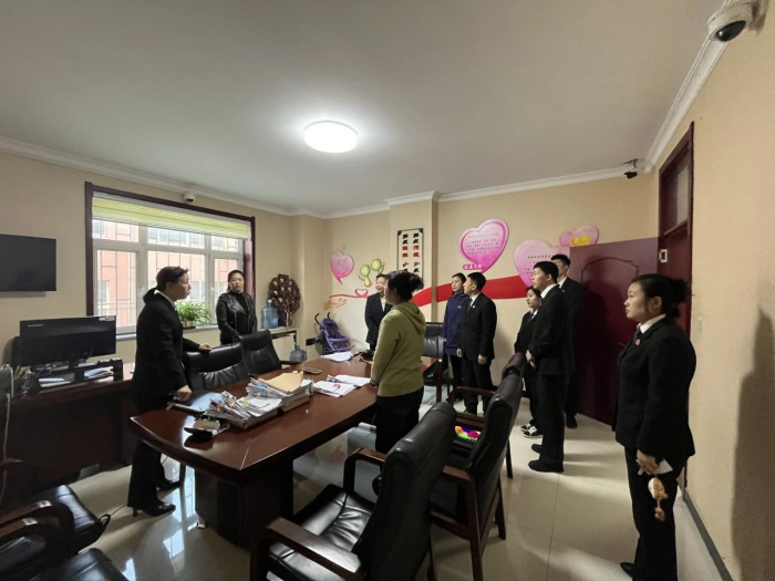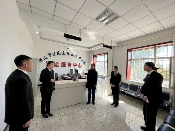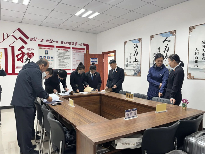 在密山法院专委吕东辉和立案庭长张玮的引导下,先后参观了密山市人民法院诉讼服务大厅、贺姐工作室、文化室、连珠山人民法庭、司法所等场所。通过实地参观、现场交流等方式,直观的感受了密山法院将审判力量“派出去”,将调解力量“请进来”的诉源治理新模式。座谈会上,围绕矛盾调解、审判质效等工作进行了探讨交流,翻阅近期案卷细致了解“委派调解+司法确认”同步调解模式。