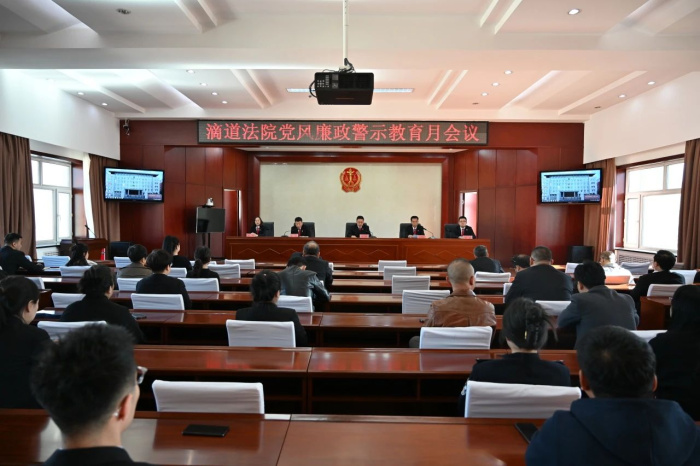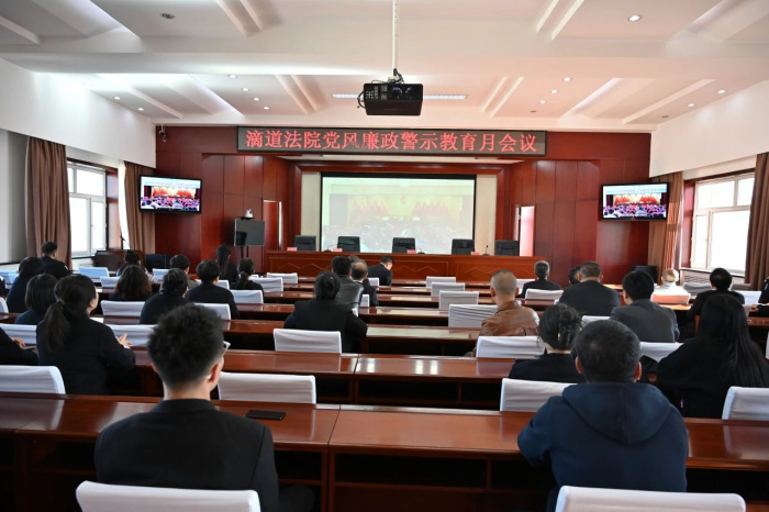 为推动全面从严治党和党风廉政建设工作深入开展,进一步增强党员干部廉洁自律意识和拒腐防变能力,滴道法院组织开展“党风廉政警示教育月”活动,全体干警参加会议。
