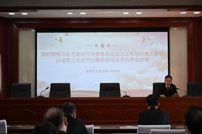 为深入学习贯彻党的二十大精神,将全体干警思想和行动统一到党的二十大精神上来,10月23日,滴道法院党组书记、院长苑司新以“深刻领悟习近平新时代中国特色社会主义思想的重大意义 以法院工作现代化推动区域经济高质量发展”为题为全体干警讲党课。
