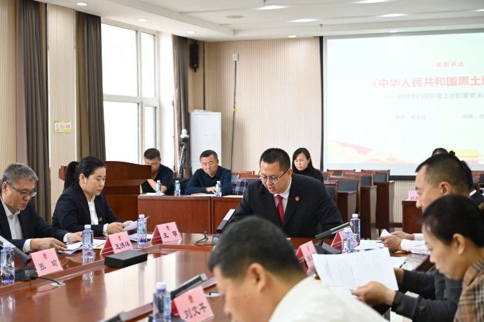 2023年11月3日召开滴道区第十七届人大常委会第十五次会议,滴道区人民法院兰岭法庭负责人崔永霖按照区人大常委会会议要求进行会前讲法,与参会人员共同学习了黑土地保护法。