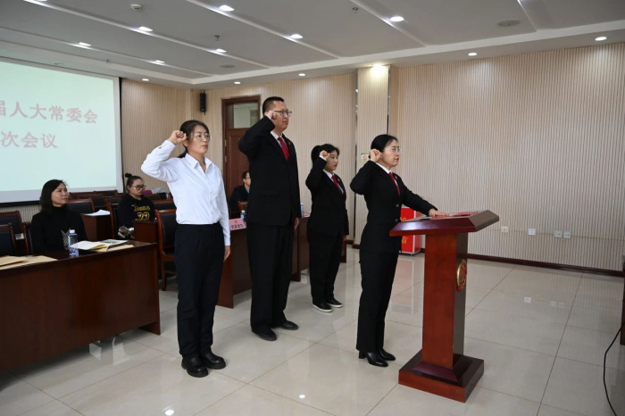 随后,滴道法院3名同志高举右拳,庄严宣誓,作出忠于宪法、忠于祖国、忠于人民的庄严承诺。铮铮誓言,字字千钧。新任职人员表示,在今后的审判工作中时刻坚守司法为民初心、践行公正司法的使命,自觉接受人大的监督,不负重托,加倍努力学习,不断提高法律业务知识和审判实践能力,以高度的政治责任感、饱满的工作热情、认真负责的态度,努力让人民群众在每一个司法案件中感受到公平正义。