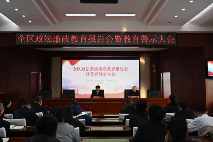 为进一步强化全区各级政法机关和广大政法干警纪法意识,不断营造政法系统风清气正的政治生态,1月5日,滴道区委政法委组织召开全区政法系统廉政教育报告会暨警示教育大会。区委常委、纪委书记、监委代主任金永海为全区政法干警作廉政教育报告,区委政法委副书记刘相生主持会议。政府副区长、区公安分局党委书记、局长朱振龙,区检察院党组书记、检察长王晶,区司法局局长刘霞,区委政法委、区政法各单位领导班子成员及科级以上干部参加会议。