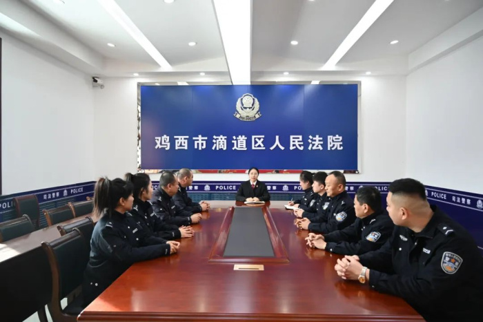 2023年滴道法院司法警察大队全体法警深入学习贯彻习近平总书记重要训词精神,出色地完成各项工作任务,在全市法院安检工作中表现优异,连续六个月获得“优秀安检岗位流动红旗”的荣誉。发扬以老带新“传帮带”的优良传统,凝聚全体法警力量,共同保卫法院安全。