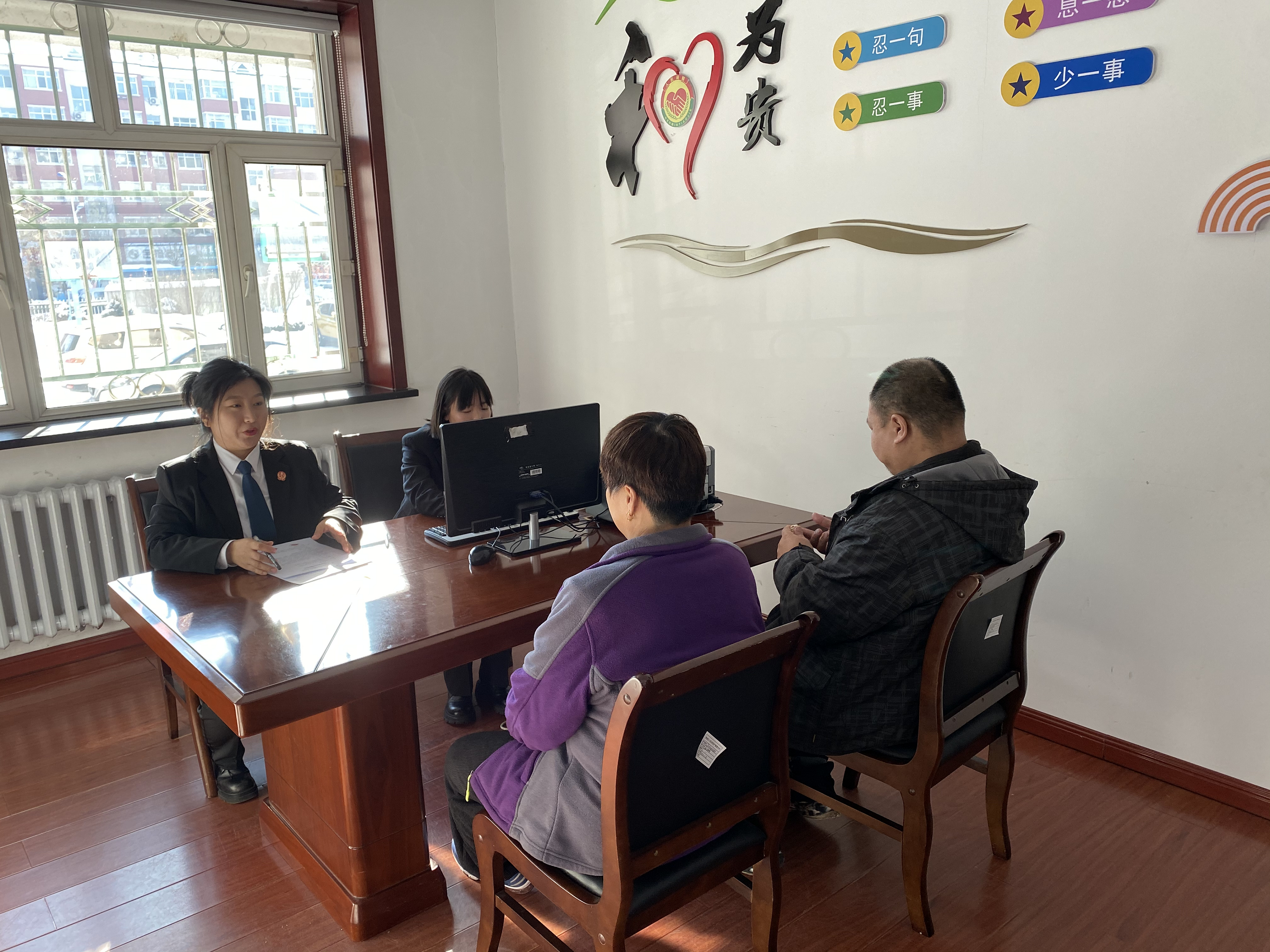抓实场地保障,推动纠纷快速化解。与司法局联合设立“老法官工作室”,聘请2名退休法官积极参与纠纷诉前调解。设立“法官咨询室”“诉前调解室”“心理疏导室”,在诉讼服务大厅设立“妇女儿童维权岗”“现役军人维权岗”“物业、金融、劳动”3个行业特定调解室,促进各类矛盾纠纷诉前解决。在派出法庭设立“郝法官工作室”,加强巡回法庭建设,人民调解组织入驻法庭,充分运用多元解纷机制,提高基层诉源治理质量。