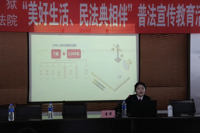 活动中,吴明与监狱负责人员共同对监狱服刑人员阐释学习民法典的重要意义,引导服刑人员知法、懂法、敬畏法律。法官助理李洋为服刑人员讲解《民法典》相关知识,对《民法典》的编撰背景、整体框架、诉讼时效、婚姻家庭、侵权责任等部分条款进行讲解,围绕见义勇为、个人信息保护、夫妻共同债务、高空抛物等与我们生活息息相关的法律问题进行解读,为大家带来了一堂有深度、有温度的法治课。课程结束后服刑人员对于出狱后子女就业限制以及如何解除限制消费令等问题发出提问,吴明和书记员张水晶一一做出解答,解除了服刑人员的困扰。