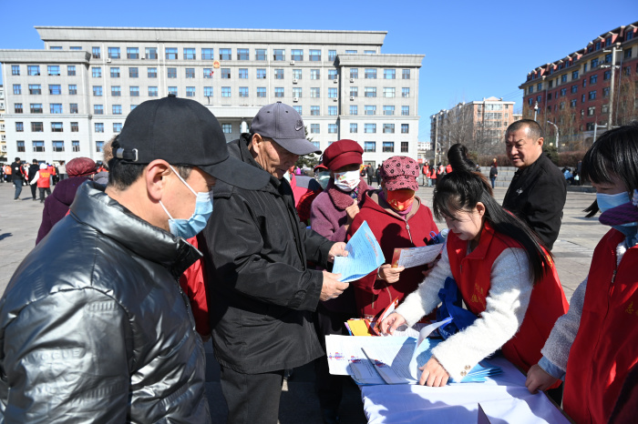 4月2日,滴道法院组织干警前往滴道广场开展《民法典》普法宣传活动。