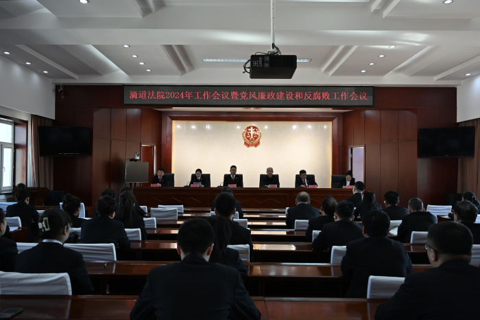 苑司新指出,全院干警要坚持以习近平新时代中国特色社会主义思想为指导,全面贯彻落实党的二十大、二十届二中全会精神和习近平总书记视察黑龙江期间重要讲话重要指示精神,认真学习贯彻二十届中央纪委三次全会、十三届省纪委三次全会、2024年全省政法系统党风廉政建设工作会议、省市两级法院2024年党风廉政建设和反腐败工作会议和我市相关会议精神,总结去年工作,研究部署今年滴道法院工作,奋力推进滴道法院工作现代化。