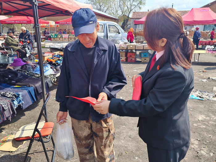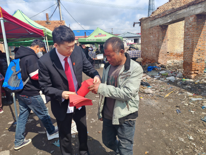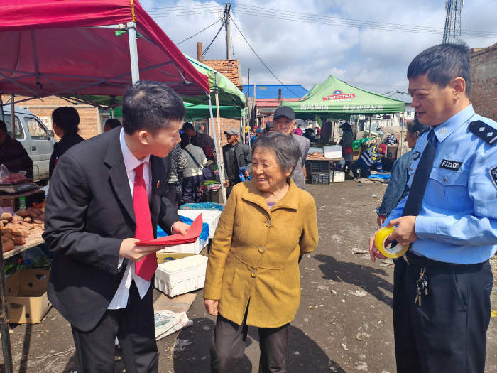 宣传活动开展期间,兰岭法庭充分利用“两微一网”线上传播快、受众面广的特点发布系列宣传,内容包括规定具体条款以及最高人民法院有关涉彩礼新规的指导性案例,同步开展线下“面对面”普法宣传工作。兰岭法庭下辖九个村,辖区占地广,人员居住分散,针对这一情况,法庭干警前往乡村农贸集市设置普法宣传台,在人流量大、人员密集时段向群众派发宣传单,为群众解答疑问。