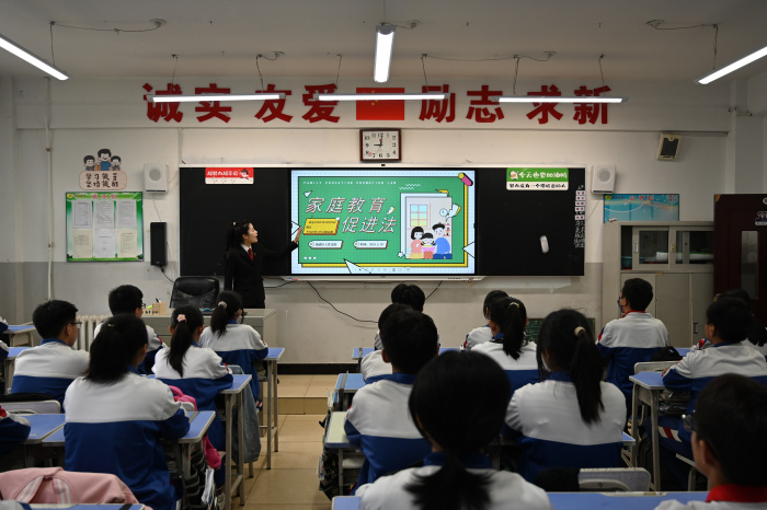 课上,李洋用通俗的语言向同学们宣讲《家庭教育促进法》,重点讲解了关于注重家庭、家教、家风建设重要论述精神,核心是培养德、智、体、美、劳全面发展的社会主义建设者和接班人。同时运用10个条文规定讲解未成年人的父母或者其他监护人担负起家庭教育的主体责任。本次与区妇联共同开展的普法宣传活动让同学受益匪浅,获得学校师生的认可。