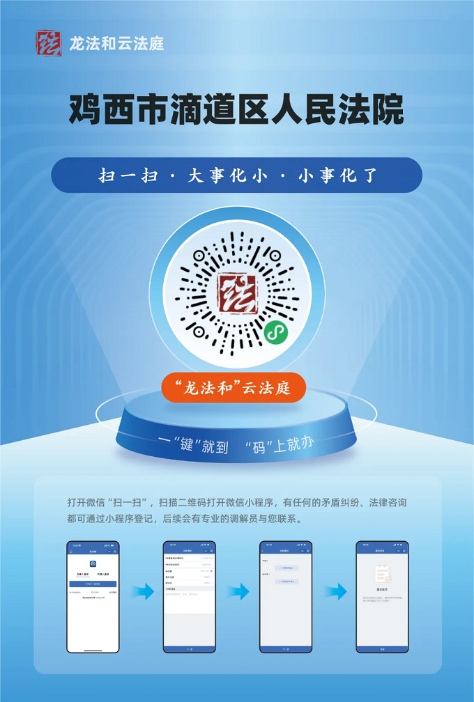 滴道法院将加大诉前调解力度,进一步发挥“龙法和”云法庭的作用,提高诉源治理效果,为人民群众提供更加优质、高效的司法服务。