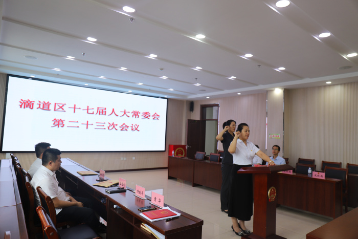 8月22日,滴道区第十七届人大常委会第二十三次会议在区人大常委会会议室召开,滴道法院党组书记、院长苑司新作了关于徐媛凤同志任职的请示,拟任职干部徐媛凤作供职发言。