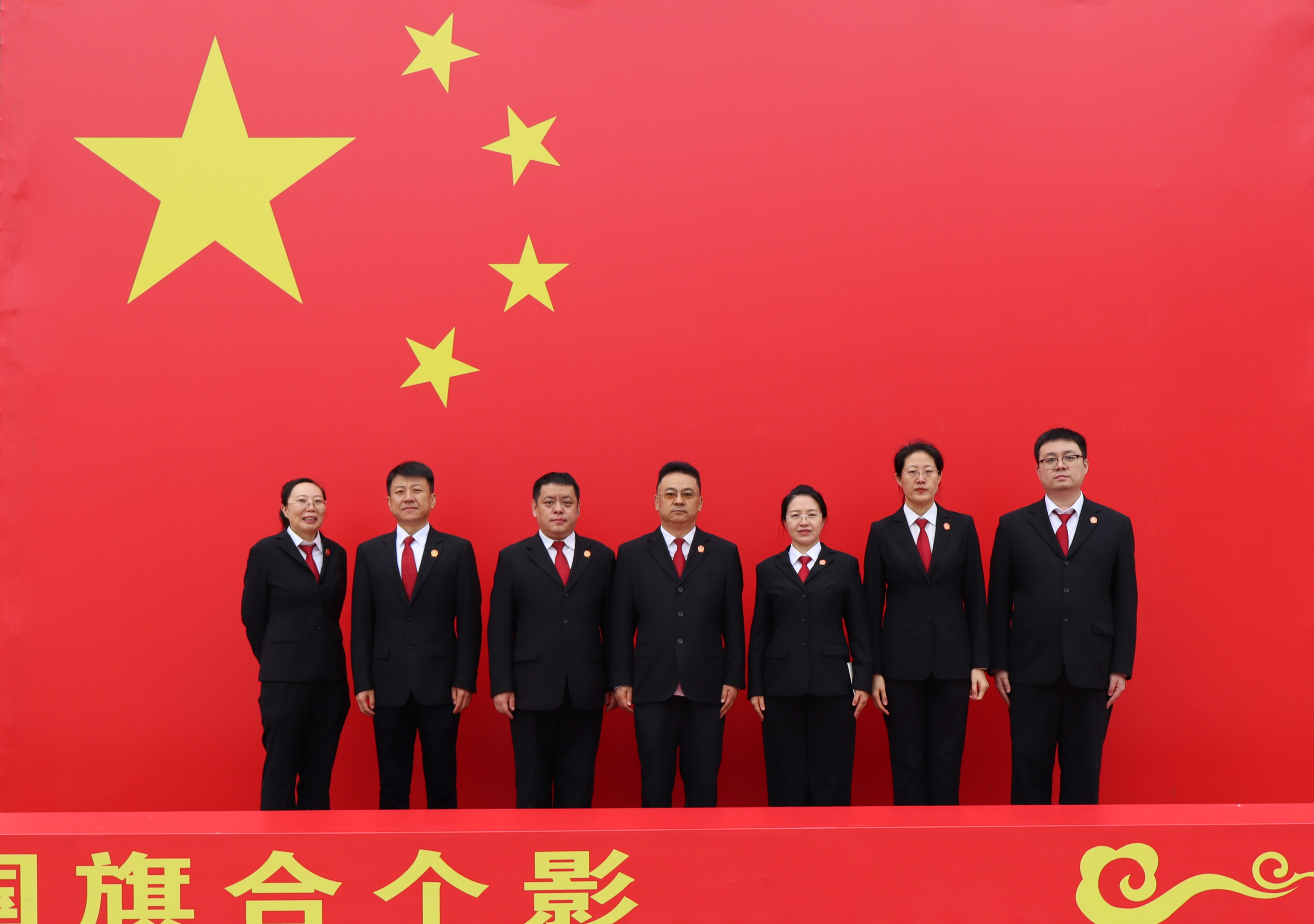 干警们与国旗合影