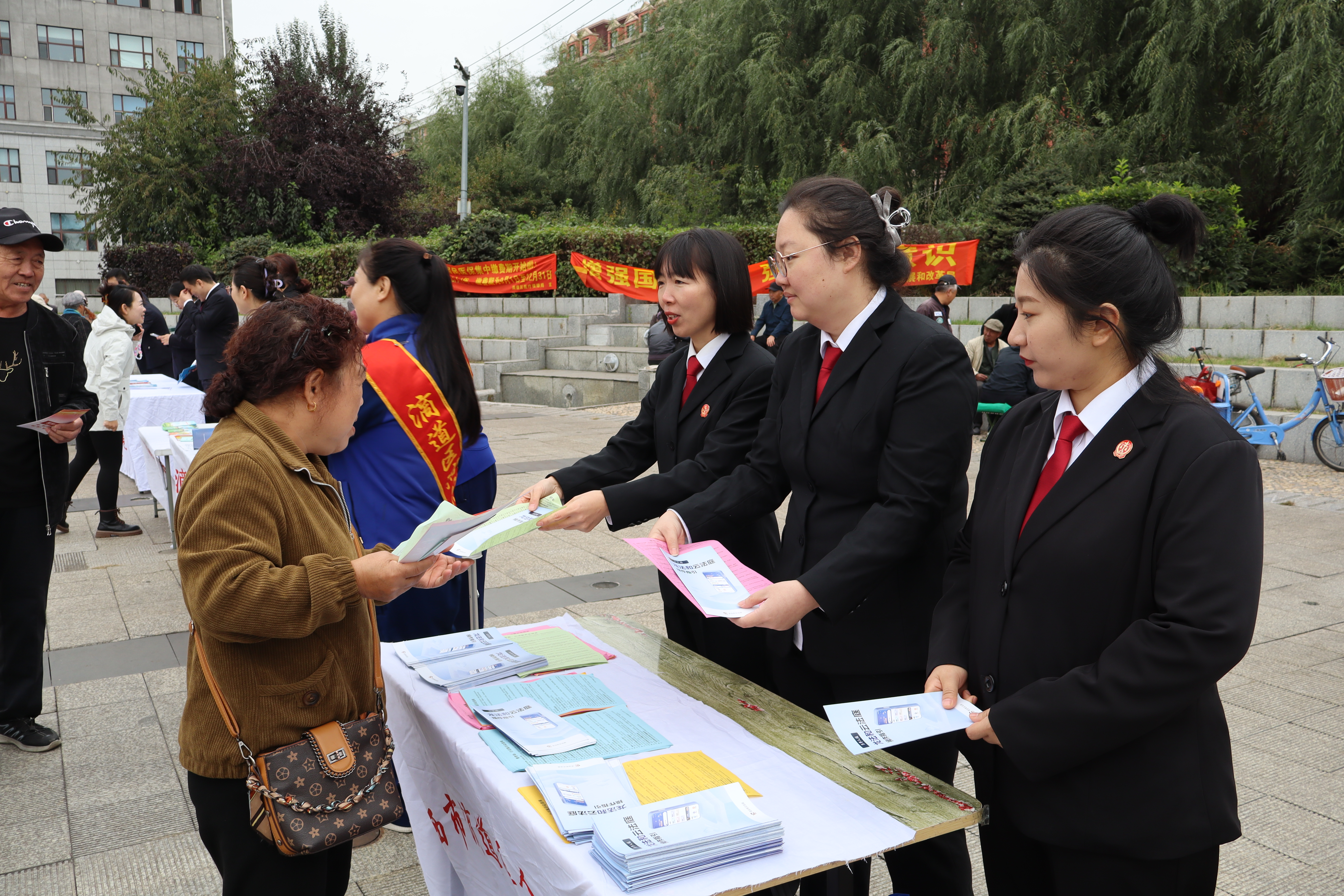 活动结束后,干警们在区政府广场开展普法宣传活动,设置法治宣传台、发放宣传资料、现场答疑,向群众介绍法庭的工作,宣传生活中常见的婚约彩礼、民间借贷、买卖合同、劳务用工、土地承包等纠纷相关法律知识。本次活动共计向群众发放宣传单页200余份、详细解答群众法律咨询30余次。