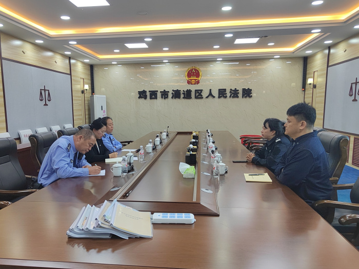 9月25日,鸡西市中院法警支队杨昌秀、陈志超一行两人到滴道法院检查指导警务安全工作,党组副书记、副院长高雪峰、综合办公室(司法警察大队)队长张海彬陪同检查。