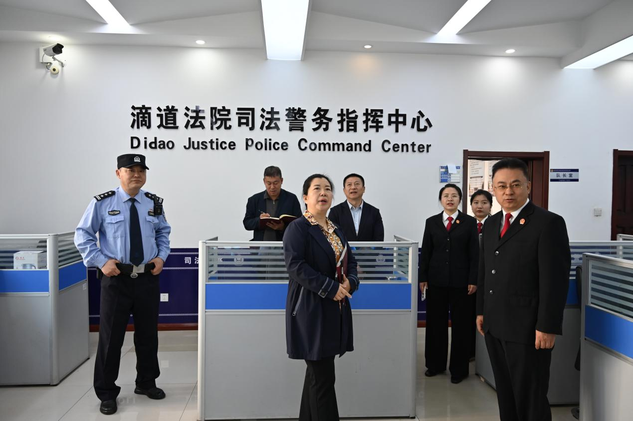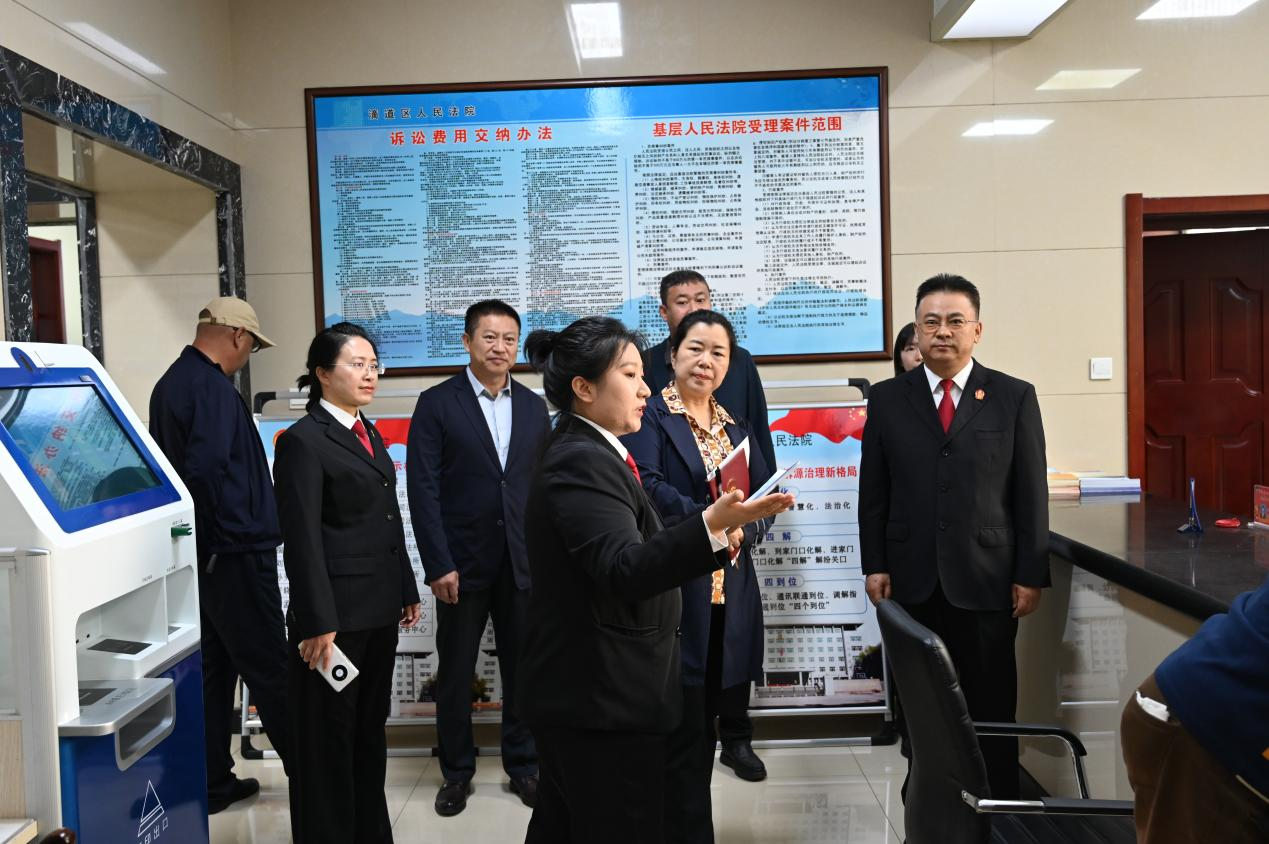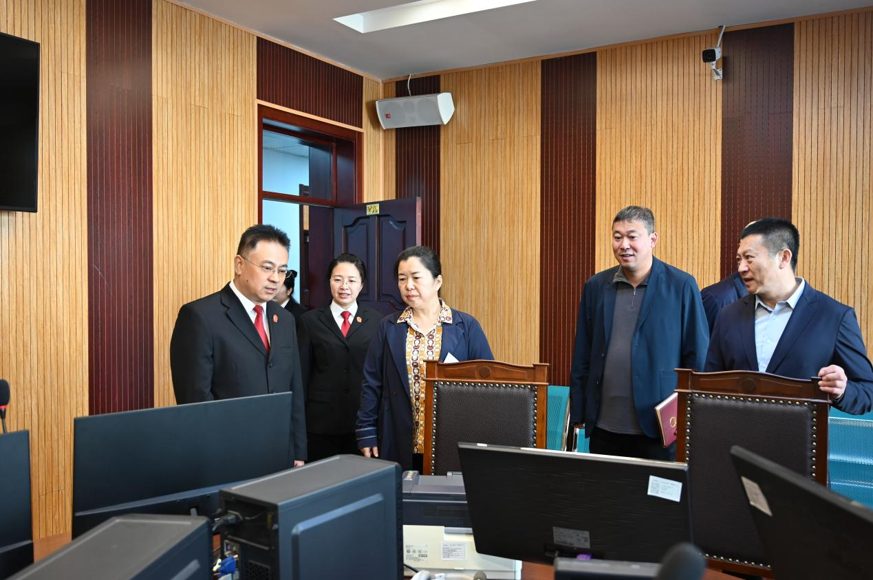 杨海英一行实地查看了我院诉讼服务中心、“龙法和”云法庭、远程接访室、司法警察中心、执行指挥中心、家事法庭、数字化审判法庭、党员活动室、党建文化室等基础设施建设情况,对于法院各项工作的开展有了更加深入的了解。