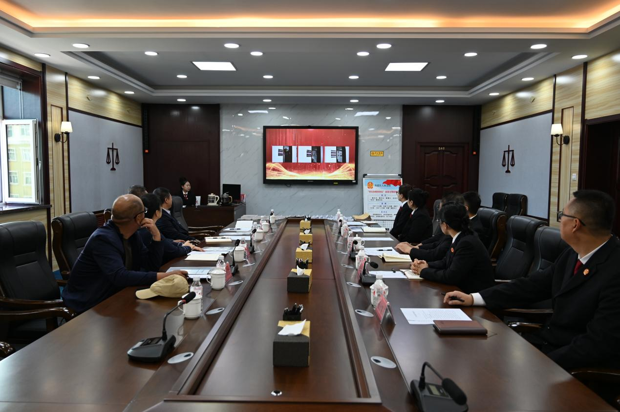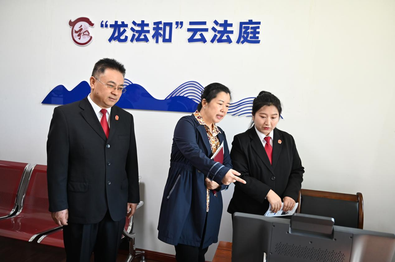 立案庭庭长朱雅楠详细讲解“龙法和”云法庭开展情况,每个村屯社区配备一名包联法官,法官线上参与调解,将矛盾纠纷化解在基层和诉前,让当事人能够足不出户解决矛盾纠纷,缩短案件处理周期,加快司法流程,提升整体的司法效能。