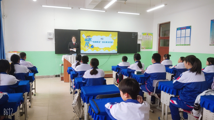 为进一步增强学生的法律意识和法治观念,引导成长中的未成年人树立正确的人生观、价值观,11月21日,兰岭法庭负责人郭微前往兰岭学校为六年级的同学们开展一堂主题为《拒绝校园欺凌,勇敢说“不”》的校园法治课。