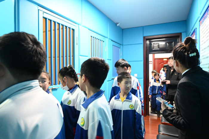 活动中,讲解员带领师生们依次参观了法院的安检室、立案庭、审判庭、羁押室等区域,详细讲解了诉讼的基本流程与各部门的工作职能,使同学们对司法程序和审判流程有了更加直观的认识。