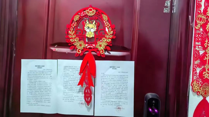 因被执行人主要活动范围较广,法警与执行法官决定兵分两路对被执行财产线索进行查询。执行一组干警来到被执行人所在房屋张贴失信决定书、限制消费令。