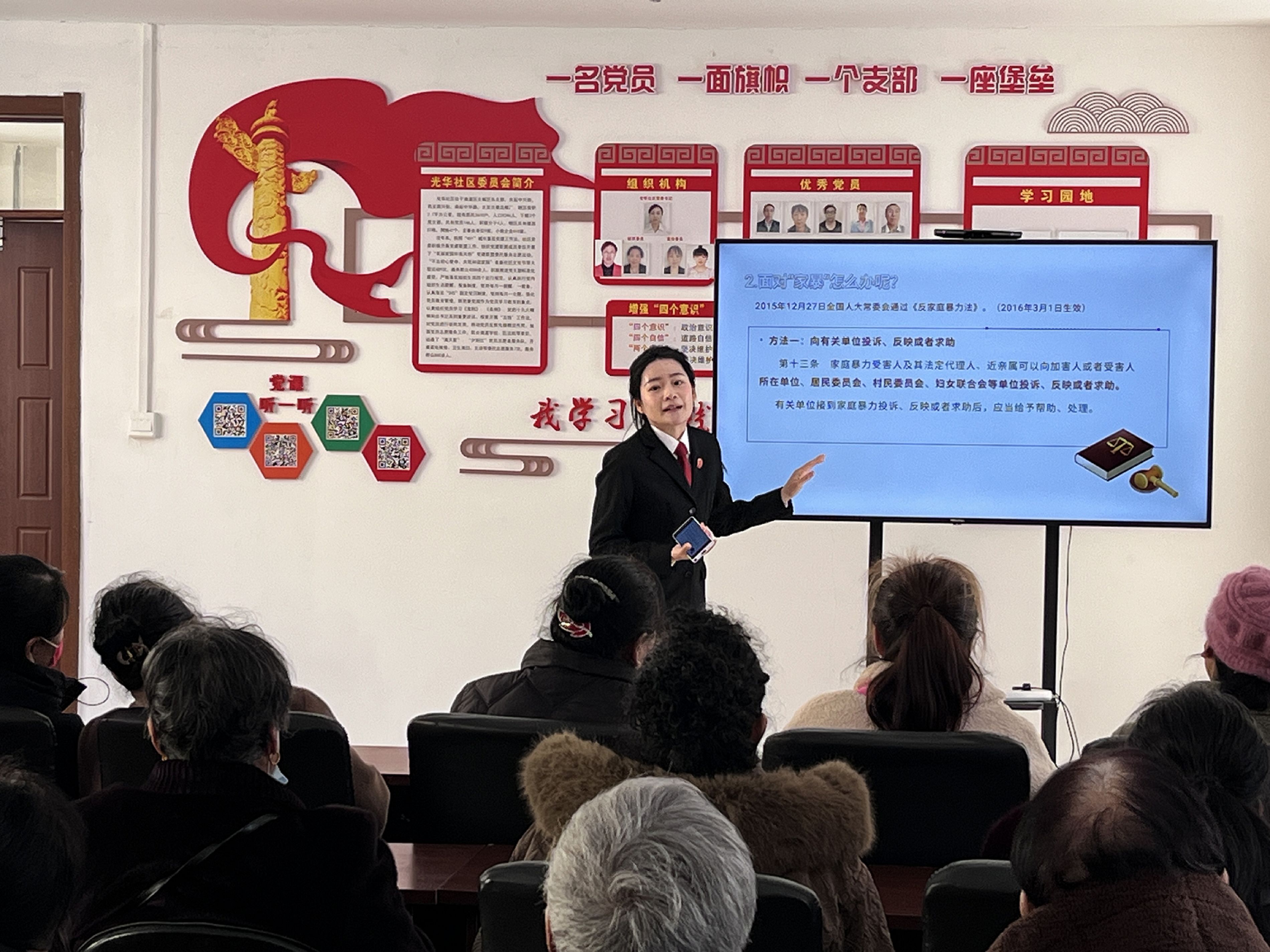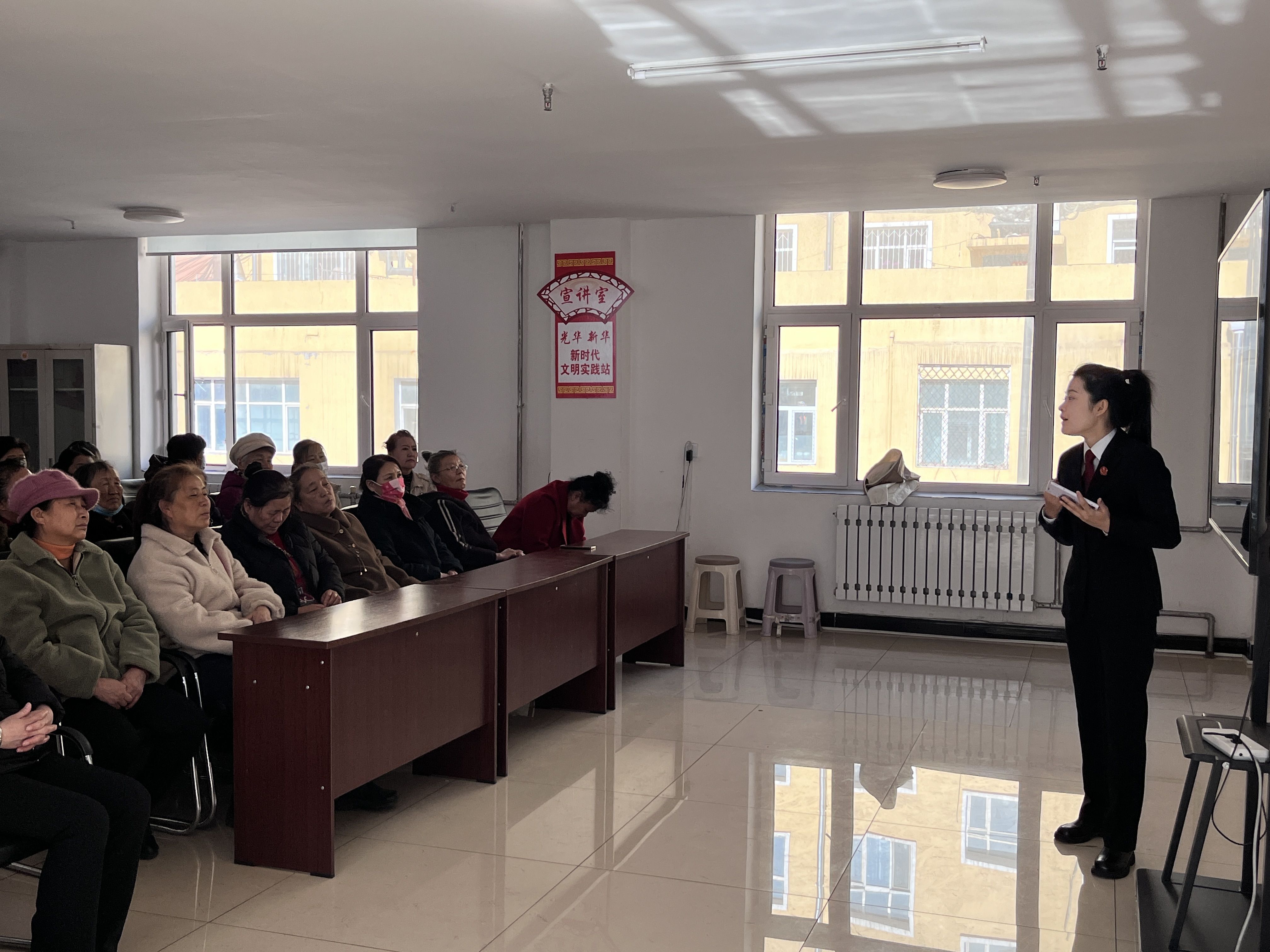 为进一步增强妇女群众法治意识,3月6日,滴道区人民法院法官助理李洋走进光华社区,开展专题宣传活动,为社区女性居民送上法治“节日礼包”。