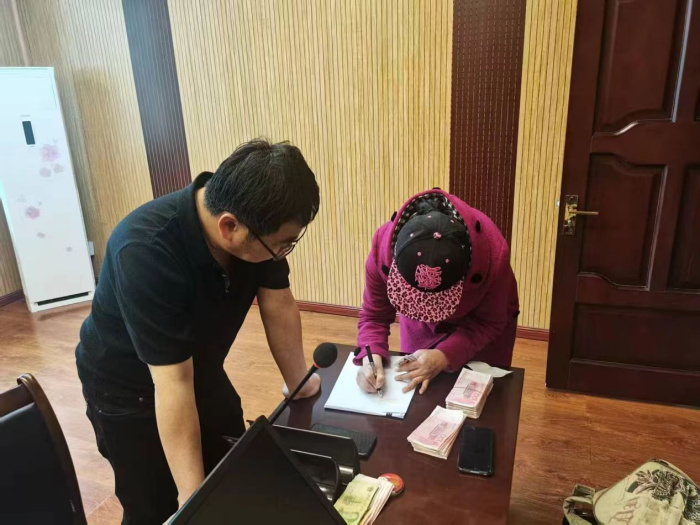 拿到张某东所返还剩余的卖房款后,执行法官立即前往张某芳家中,详细的讲解了判决的各项内容以及执行款的计算,同时也对其阐述了家和万事兴的重要性,并将剩余款项交到她的手中。