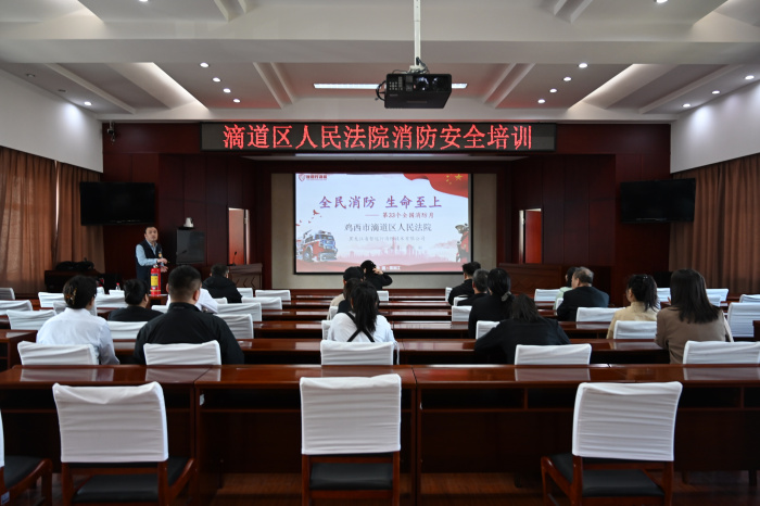 为进一步提升全院干警的消防安全意识和应急处置能力,构筑法院安全保障工作合力,5月26日下午,滴道法院邀请黑龙江省智远行消防技术有限公司王教官进行消防知识宣讲,20余名干警参加培训。