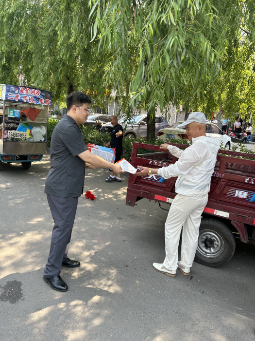 干警们参加滴道区禁毒委组织的禁毒徒步活动,活动后,干警走进街道开展普法宣传,对过往群众现场答疑,共发放传单100余份。