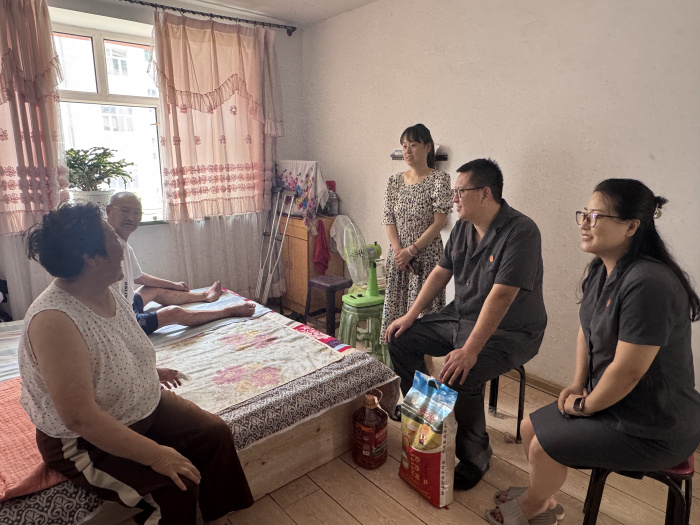 滴道法院综合审判庭庭长崔永霖、兰岭法庭庭长郭微与困难群众进行了亲切地交谈,了解他们近期的生活情况,鼓励他们保持乐观心态,积极面对生活。