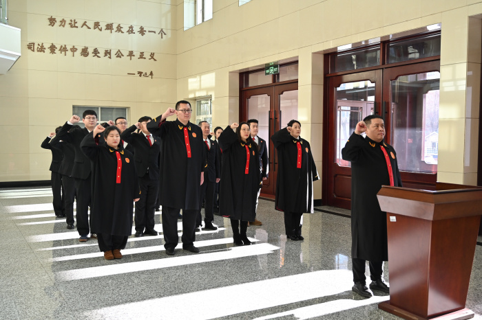 12月4日,滴道法院组织宪法日宣誓活动。仪式现场,党组成员、副院长王劲松带领干警身着法袍、佩戴法徽,整齐列队,面向国旗庄严肃立,举起右手,铿锵有力地宣读誓词。