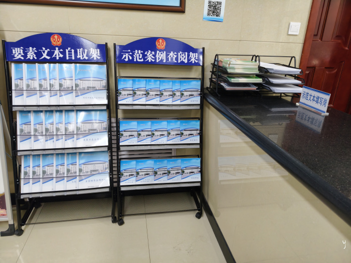 自助服务区域内专门划分人民法院案例库检索区,配备多台电脑终端,当事人可免费检索类案裁判文书、查阅相关法律依据,为诉讼准备提供专业参考。设置示范文本填写岗,摆放要素文本自取架、示范案例查阅架,涵盖各类诉讼文书模板、典型案例参考资料,当事人可按需自取,对照模板规范填写文书,有效解决“不知怎么写、写不好”的难题。