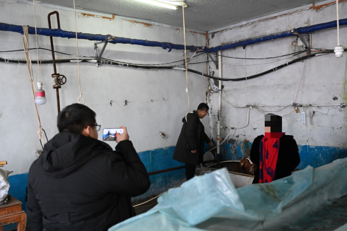 2月4日,滴道区人民法院综合审判庭法官温兴国带领法官助理矫春礼前往辖区内某洗衣厂,对一起因外墙损坏引发的民事纠纷进行现场勘验。