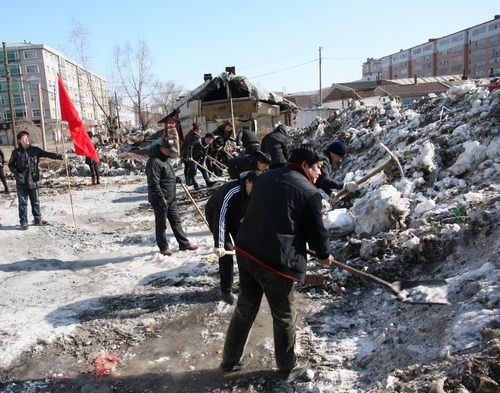 滴道法院干警参加“整治城乡环境,共建美好家园”活动