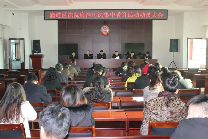 为深入贯彻最高人民法院关于在全国法院开展2015年度廉洁司法集中教育活动的通知要求,1月28日上午8时30分,滴道法院召开廉洁司法集中教育活动动员大会,党组成员和全院干警参加了此次会议。