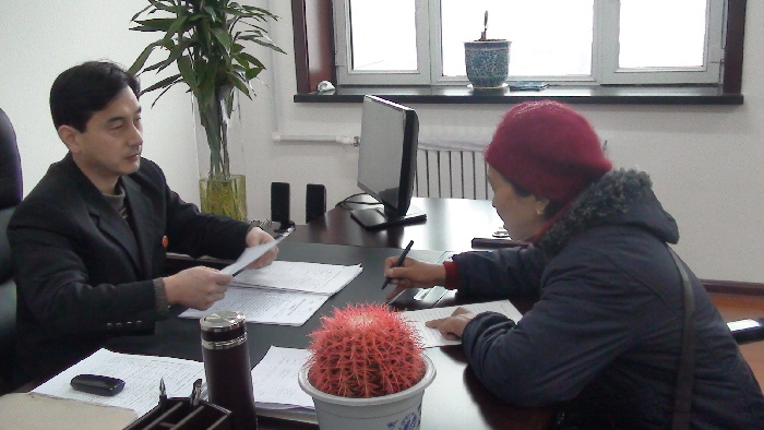 中午11时30分许,院里其他干警已经去吃饭了,但是在一间办公室里,还有一位法官在不辞辛苦的为双方当事人调解,他努力的平息双方当事人的情绪。经过一上午的努力,最后终于使双方达成调解协议,看着双方当事人在调解协议上签下了名字,他欣慰的笑了。他就是滴道区人民法院民一庭庭长刘欣,全省法院调解能手,群众眼中最贴心的人。