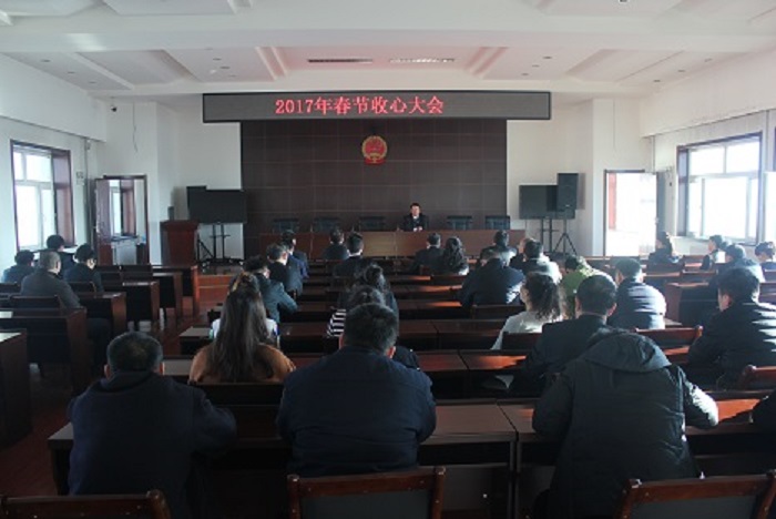 2017年2月3日,春节长假后的第一个工作日,滴道法院召开收心会。会议要求全院干警要迅速从节日的氛围中走出来,尽快调整好精神状态,收心归位,要以饱满的精神状态投入到审判工作之中。