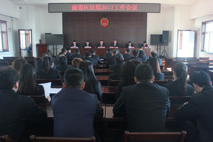 2017年3月23日,滴道区人民法院召开了2017年工作会议,深入贯彻落实省、市委政法工作会议和全市法院工作会议暨推进解决执行难问题工作会议精神,重点传达了王双近院长的讲话,层层签订了《党风廉政建设责任书》,滴道区人民法院党组书记、院长赵鸿江作了工作报告。